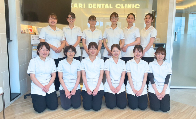 歯科衛生士募集要項 歯科衛生士17名在籍! スタッフが多いからこそ、学べる・活躍できる! 静岡ひかり歯科・矯正歯科で、 歯科衛生士の第一歩を踏み出してみませんか? 【2021年より診療時間を短縮しました】 当院ではこれまで、開院以来2度目の診療時間短縮をしてまいりました。 現在の診療時間は平日18:00まで、土曜日は17:00にて診療終了となっております。 静岡ひかり歯科・矯正歯科は、患者様はもちろんスタッフにとっても「ここを選んでよかった!」と思ってもらえる職場を目指しています。 来年度募集スタート! 一日150名が来院する歯医者 メインテナンス専用設備が充実 あなたが歯科医院に求める条件は何ですか? 現在、静岡県内に歯科医院は1,771軒あります。 この中で、「就職してよかった!」と思える医院を見つけ出すのは、奇跡に近いのかもしれません。 歯科衛生士としての一歩を踏み出した後、あなたが成長できるかどうかは働く環境次第です。 静岡ひかり歯科・矯正歯科は、歯科衛生士として・また一人の女性として充実した毎日を過ごして欲しいと考えています。 静岡で運命の歯科医院を見つけるために 「給料が良い」「家から近い」「建物がキレイ」…本当にそれだけでいいの? おそらく、ほとんどの方が「お給料が良くて、家から近い」など、望んだ条件が多くそろっている歯科医院を選んでいると思います。 もしあなたが、「条件だけ」で就職先を選ぼうとしているなら…お伝えしたいことがあります。条件はもちろん大切ですが、求人票やホームページ上の情報だけでは見えない情報が多いのもまた事実です。 あなたは、静岡県は、全国的にみても歯科衛生士が不足していることをご存知でしょうか。2018年のデータでは、1医院あたりの歯科衛生士の人数は平均約1.9人といわれており、これは全国で31位という低い水準に位置しています。 このことを知らずに労働条件だけを比較して職場を決めてしまうと、あなたはある問題に直面することになります。 入社して初めて気づく「ギャップ」とは? 人手不足・衛生士不足が原因で生じる「入社後のギャップ」をご存知ですか? 先ほどもお伝えした通り、静岡県内の歯科医院の多くは歯科衛生士不足・人手不足という問題を抱えています。 歯科衛生士が不足していると、当然のことながら、一人ひとりの抱える仕事の負担が大きくなる傾向があります。 例えば、以下は全国の歯科衛生士を対象に行われた「就職先で感じたギャップ」についてのアンケート結果です。 多くの歯科衛生士が、「良い」と思って選んだはずの就職先で、次のような問題に悩まされていることが報告されました。 お給料が良いけど、休みが取れないし残業も多くて大変 受付業務、アシスタント、洗い物など、とにかく仕事が集中する 家から近くて楽だけど、先輩スタッフが少なく分からないことばかり 一緒に働くスタッフのモチベーションが低く、不安になった 仕事が忙しくて、プライベートの時間が少ない 歯科衛生士が少ないので歯周病治療を行う環境がない 少人数の医院では特に、人間関係が一度こじれると、働き続けるのが困難になる etc... 歯科衛生士不足・人手不足に悩む医院では、就職後にこういった問題に直面することとなってしまう歯科衛生士も少なくないのです。 あなたが将来、就職先選びに失敗しないためには、お給料・休みなどの福利厚生に加えて、実際に働く歯科衛生士・スタッフに注目し、「本当に働きやすいか」「スタッフは長く勤めているか」ということをチェックすることが重要なのです。 「人手不足」のトラブルを避けるためには、スタッフの人数・働き方をチェック! どうすれば「後悔しない職場」を見つけ出せるのか? 多くの歯科医院では、人手不足から派生する、様々なトラブルを抱えていることがわかりました。 1日の半分は「仕事」をします。そこで働く仲間と過ごします。 「やりがい」「自信」「仲間」、「働きやすさ」・・・安心して働くために、条件だけを比較していては気づけないポイントもしっかりチェックしていくことが大切なのです。 あなたの人生の、多くの時間を過ごす職場。 いろいろな角度からチェックすることで、「ここだ!」という医院を見つけ出すことは可能なのです。 静岡ひかり歯科・矯正歯科からあなたへ 失敗しない職場選び「9つのポイント」 当院は総勢60名のスタッフ、17名の歯科衛生士が在籍する大型歯科医院ですが、これだけのスタッフが働いてくれているのは、何より働きやすい環境が整っているから。 静岡ひかり歯科・矯正歯科には、「この医院を選んでよかった!」と思っていただける9つのポイントがあります。 そして、これらは全て、歯科衛生士が働く上で欠かすことはできないものだと考えています。 それでは、これから一つずつご紹介していきます。 1)効率的にスキルアップするための「教育カリキュラム・診療マニュアル」 初めての職場では「自分はやっていけるのだろうか」と誰